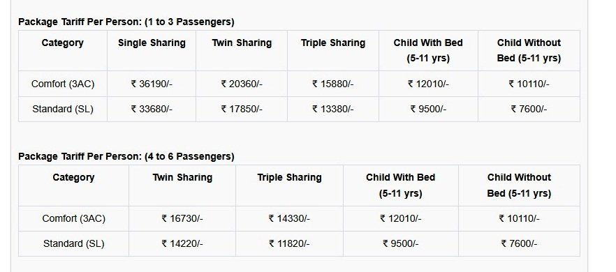 ఇతర వివరాలకు IRCTC వెబ్సైటు చూడండి.