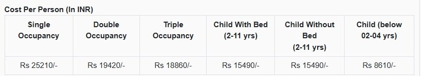 ప్యాకేజీ లో భాగంగా అల్పాహారం, రాత్రి భోజనం అందిస్తారు. మధ్యాహ్నం భోజనంతో పాటు ఇతర పానీయాలు, చిరుతిళ్లను పర్యాటకులే భరించాలి. ఏసీ హోటల్‌ వసతి కల్పిస్తారు. లోకల్ ప్రయాణాలకు ఏసీ వాహన సదుపాయం కల్పిస్తారు. ఐఆర్‌సీటీసీ ఎస్కార్ట్‌ సేవలు ఉంటాయి. పర్యాటకులకు ట్రావెల్‌ ఇన్సురెన్స్‌ సదుపాయం ఉంటుంది.  ఇతర వివరాలకు ఐఆర్‌సీటీసీ టూరిజమ్‌ వెబ్‌ సైట్ ను చూడండి.